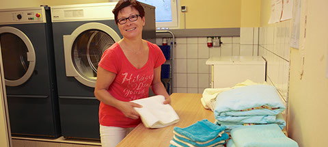 Mit unserer hausinternen Wäscherei sorgen wir für saubere und gepflegte Kleidung und Wäsche der Bewohner, und auch die hauseigene Wäsche wird gewaschen und wieder schrankfertig zur Verfügung gestellt. Kleinere Wäsche-Reparaturen führen wir bei uns kostenfrei durch.