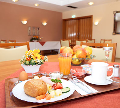 Die Wünsche und speziellen Bedürfnisse der Bewohner werden dabei selbstverständlich berücksichtigt. Alle Speisen sind für Diabetiker geeignet und werden frisch zubereitet.