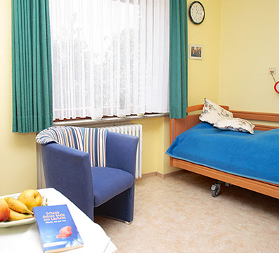 verfügen über lichtspendende große Fenster, sowie Anschlüsse für Fernseher, Telefon und Internet. Selbstverständlich können Sie auch vertraute Gegenstände mitbringen. WC und Bad sind in den Einzelzimmern vorhanden.