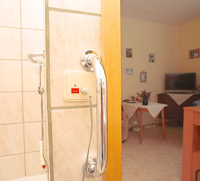 Auf jeder unserer drei Etagen, jeweils bequem mit dem Fahrstuhl erreichbar, befinden sich ein freundlicher Aufenthaltsraum sowie ein großzügiges Pflegebad.