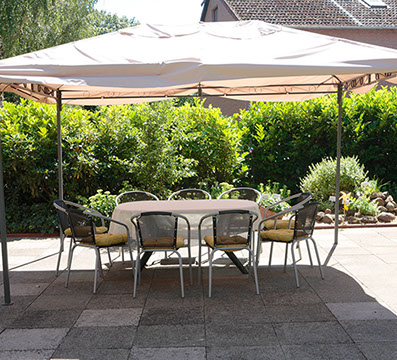 Unser Haus verfügt über zwei großzügige Gartenanlagen mit sonnigen und schattigen Ruhezonen, vor und hinter dem Haus gelegen. Der Garten hinter dem Haus ist umzäunt und bietet somit sicheren Schutz für unsere Bewohner. Auf der ersten Etage des Hauses befindet sich zusätzlich noch eine große Dachterrasse, die bei den Bewohnern ebenfalls äußerst beliebt ist.